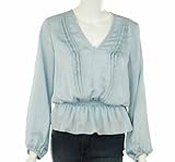 Shirt features a v-neck with tucks down from and an elastic waist..../ Michael Kors V-Neck Long Sleeve Shirt Blue Fog PL / Kors